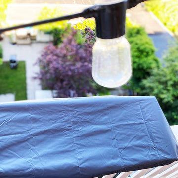 The cover is made from  polyester and consists of an elastic, so it fits on your balkonbar. The material is coated twice and therefore ensures your cover is water resistant, flame retardant and offers protection against UV.