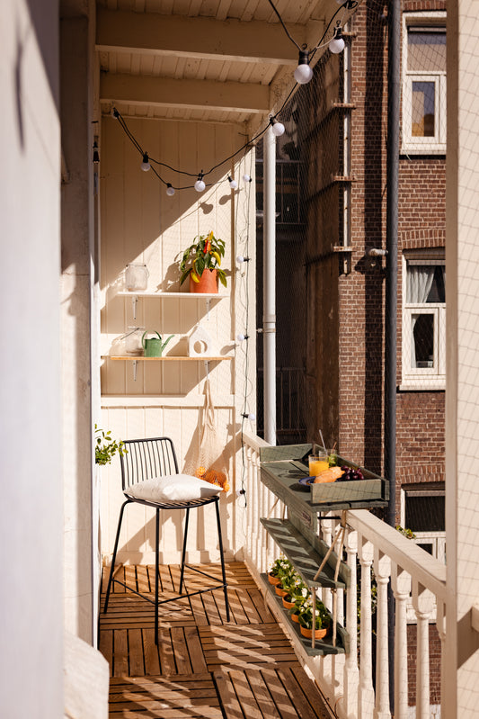 You can also choose to provide your Balkonbar with closed ends, buying our Balkonbar Sides. These are available in the same types of wood and colours as the Balkonbar.